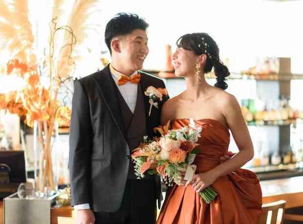 秋の結婚式トップシーズンでのご披露宴。装飾もパンパスグラスやテラコッタカラーを取り入れて、ゲストの皆さまに季節感をお届け。新郎新婦様手作りのウェルカムスペースにも紅葉のガーランドを飾り、入り口から華やかな雰囲気でのお迎えとなりました!専属のフラワーデコレーターがお二人のご希望をお伺いしながら、完全オリジナルデザインをご提案させて頂きます♪