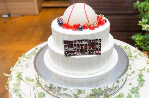 学生時代野球部だった新郎様と、野球部のマネージャー経験のある新婦様。 披露宴のテーマは自然と「野球」になりました。 ウェルカム装飾や席札、テーブルコーディネートにも野球を散りばめ、もちろん、ケーキのデザインにも拘りました! ゲストにも大好評でしたが、お二人の当時のことを思い出されたのか、特に親御様は大変嬉しそうにお写真をたくさん撮られていました。