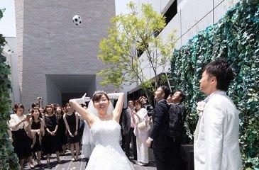 挙式後はサッカーボールでボールトス