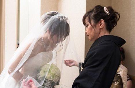 「魔よけ」の意味を持つ、ベール。生まれた瞬間から1番近くで見守ってくれていたお母様に、ベールを下ろしてもらうことで、「そばで見守るのは今日で最後だけど、これからは新郎さんが守ってくれるわね。たくさん幸せになるのよ。」という気持ちを込めて花嫁様のお支度を完成させます。マーカスは、チャペルの前に【前室】という特別な空間があるので、親子最後の時間もしっかり確保できます。