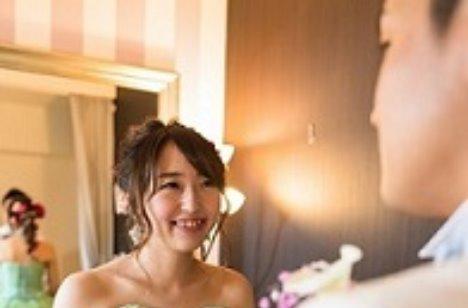 関西と関東で遠距離だったお二人。勿論衣装選びもなかなか一緒に行くことが出来ませんでした。なので、「ファーストミート」という演出を取り入れました。 これまでで1番美しい新婦Kさんを見た新郎Hさん。 恥ずかしそうにはにかむ笑顔が印象的でした。