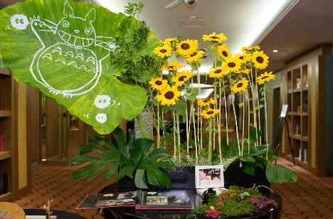 ジブリが大好きなおふたり。今回の結婚式のテーマはもちろん”ジブリ”!こだわったウェルカムスペースには大好きなトトロが、作中で雨宿りのシーンで持つビックリーフに描かれています! 季節感を感じる夏のひまわりも添えて、印象に残るウェルカムスペースでゲストを迎えます♪