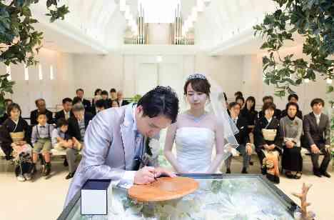 ご親族様に見守られ、夫婦としての誓いを立てていくおふたり。 ”ジブリ”のテーマに合わせて、トトロのリングピローと切り株モチーフの結婚証明書をご準備いただきました。 THE MARCUS SQUARE KOBEのチャペルのホワイト×グリーンに、おふたりの結婚式場証明書のブラウンがとてもよく映えます♪