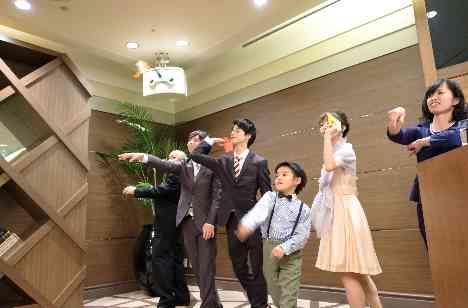 ご親族様中心の今回のパーティー。幅広い年代の皆様がご参列いただくこともあり、ゲストが楽しめる演出をしたいと考えていたおふたり。大人から、小さなお子様まで巻き込んだ、ジブリの作中にも登場する「紙ヒコーキ」でどれだけ遠くに飛ばせるかの対決! 優勝者にはおふたりからのプレゼントが。とっても盛り上がりました♪