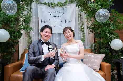 「森のくまさん」がテーマのおふたり。会場内のビジュアルにもとことんこだわりました!ゲストとの間を隔てるものがないソファメインを選んだおふたりは、ソファ周りに大きなツリーを装飾!まさに「森」から出てきたかのよう♪お写真映えもばっちりですね^^