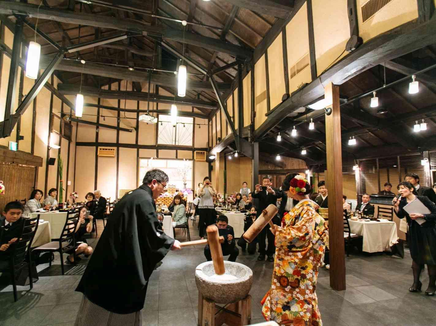 かつて精米した酒米を蒸すための場所で、酒造りの最初の工程の場所であった事から、壱番蔵という名がつけられています。ゲストとほどよい近さが心地よいゆったりとしたアットホームな結婚式が叶う会場