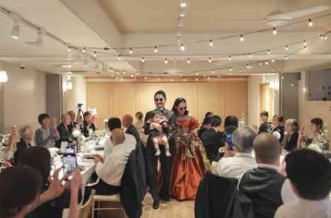 ゲストテーブルを長卓にすることでゲスト同士の距離が近い空間を叶えました! 型にはまらず理想の空間づくりを実現!!! 披露宴会場にはお二人のテーマ「家族」ならではのアイテムがたくさん!ご家族との写真や挙式で使用した結婚証明書の「カチンコ」をメインへ。 お色直し入場では家族揃ってサングラスをかけての入場!!! かっこよくみんなで入場しました^^