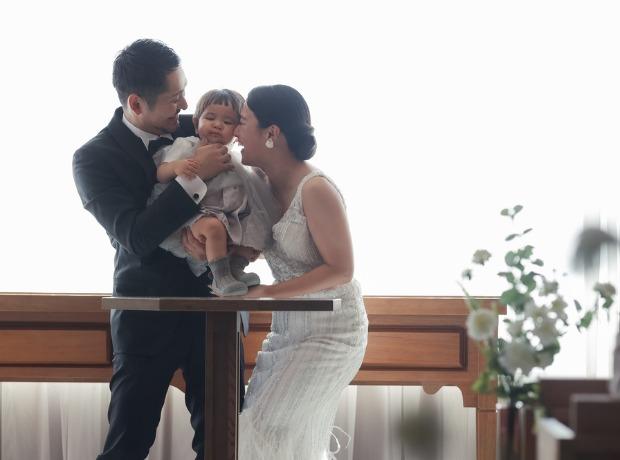 結婚式のテーマは「家族」 両家両親はもちろんお二人のもとに来てくれた天使も一緒に♡ これからの“繋がり”を大切にできるような時間を結婚式で叶えました! 挙式前にはルーフガーデン(屋外チャペル)でこれまで支えてきてくださった両親に感謝の気持ちを込めて「ファミリーミート」を開催! 家族との時間を大切にしたい!そんなお二人の思いが叶った瞬間! とてもほっこりした時間を過ごしていただきました
