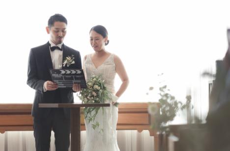 ゲストテーブルを長卓にすることでゲスト同士の距離が近い空間を叶えました! 型にはまらず理想の空間づくりを実現!!! 披露宴会場にはお二人のテーマ「家族」ならではのアイテムがたくさん!ご家族との写真や挙式で使用した結婚証明書の「カチンコ」をメインへ。 お色直し入場では家族揃ってサングラスをかけての入場!!! かっこよくみんなで入場しました^^