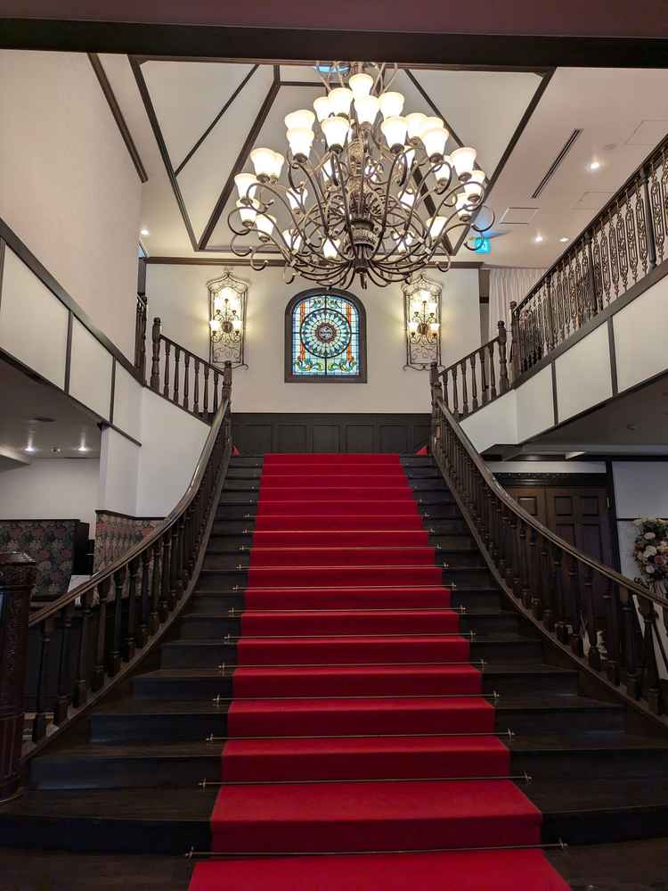 正面玄関を入ると目の前に大階段があり、披露宴会場にも階段があるので、印象的ですし、写真映えするなと思いました。