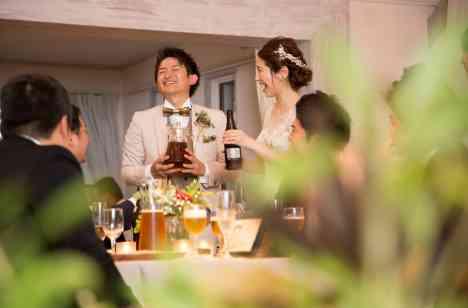来てくださる方々に感謝の気持ちを伝えたいとお二人のご希望を伺い、ゲストとのお時間をゆっくり取り、お料理やお飲み物を楽しんでいただくことを第一に。 乾杯酒のお渡し、歓談中にゲストひとりひとりへお酌。お二人らしいおもてなしでスポットライトをゲストに当てる。