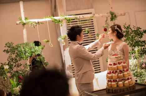 今回お二人が選ばれたのはカップケーキ。 タワーに小さいカップケーキが乗っているため、見た目が可愛くゲストのシャッター音も止まらなかった。 ファーストバイトでは、一番上のケーキを食べさせ合い、ご両家のお母さまにもお二人から食べさせていただくラストバイトも取り入れた。ありったけの感謝の気持ちを込めた瞬間だった。