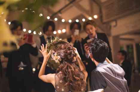 カメラ好きのお二人。 お二人は自分たちの写真を残していただくよりもゲストと一緒に写ることを優先した。メインテーブルから見えるゲストの表情をずっと忘れないように、お二人の見えているものをしっかりと残す。結婚式後、写真を見返すとこの感謝の気持ちを思い出せるようにという想いがあった。ゲストとお二人が撮り合いをしている姿もアットホームの雰囲気だからこそ出来ること。