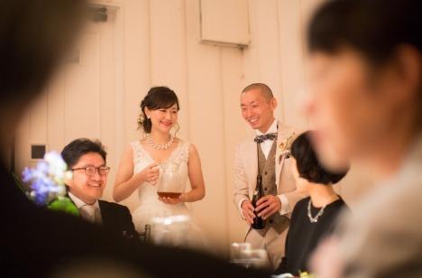 お招きしたゲストへ一番のおもてなしとしてお料理第一に。 温かいものを温かいうちに、冷たいものは冷たいうちにお召し上がりいただく贅沢なおもてなしを大切にしているお二人。 お食事をゆっくり楽しんでいただいているゲストのもとへ自らご挨拶やお酌。 ゲストの方々の自然体な笑顔がお二人を囲む。