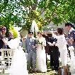 シンボルツリーを囲むように並べられた椅子の真ん中には宣誓台。大切な人たちのすぐ近くで愛を誓う。今、みんなが待っている場所へ。