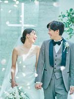 洗練された純白のチャペルは、天窓を流れる水越しに光が降り注ぐ神秘的な空間。その神聖な輝きがふたりを優しく包み込み、誓いの瞬間を彩ります。