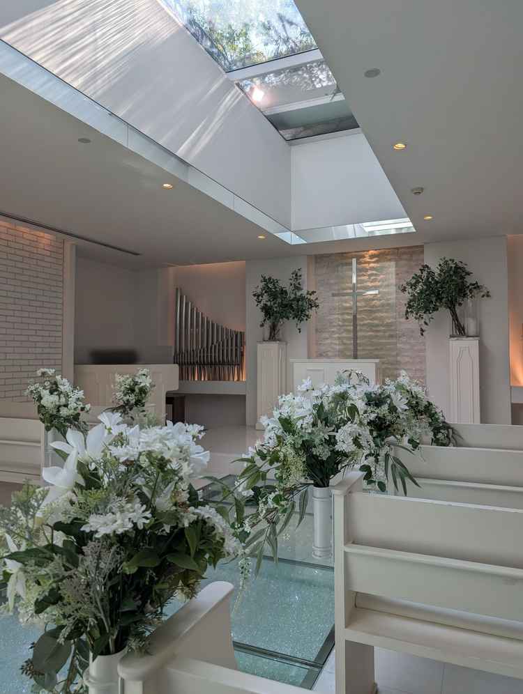 チャペルの明るさとロビーの落ち着き感のコントラストがはっきりしていて、1日の流れを考えられていると思った。