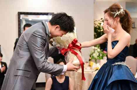 共通の友人に余興をお願いしたところ 新婦は新郎に友人とフラッシュモブを 新郎からは花束と感謝の気持ちを伝えるサプライズを お互いにおこなう演出を考えてくれました。 とても幸せな時間で一生忘れない素敵な思い出となりました。