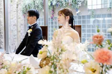 ゲストの皆様とお気に入りのウエディングドレス姿で長く過ごしたいとお考えになり、お色直し後もたくさんのお時間をお取りしました。皆様がおふたりのお席にお越しになり会話やお写真撮影のお時間は非常に楽しい雰囲気となり、肩ひじ張らずおふたりらしい優しい空間で大切な方々と喜びを分かち合う様子がとても印象的でした。