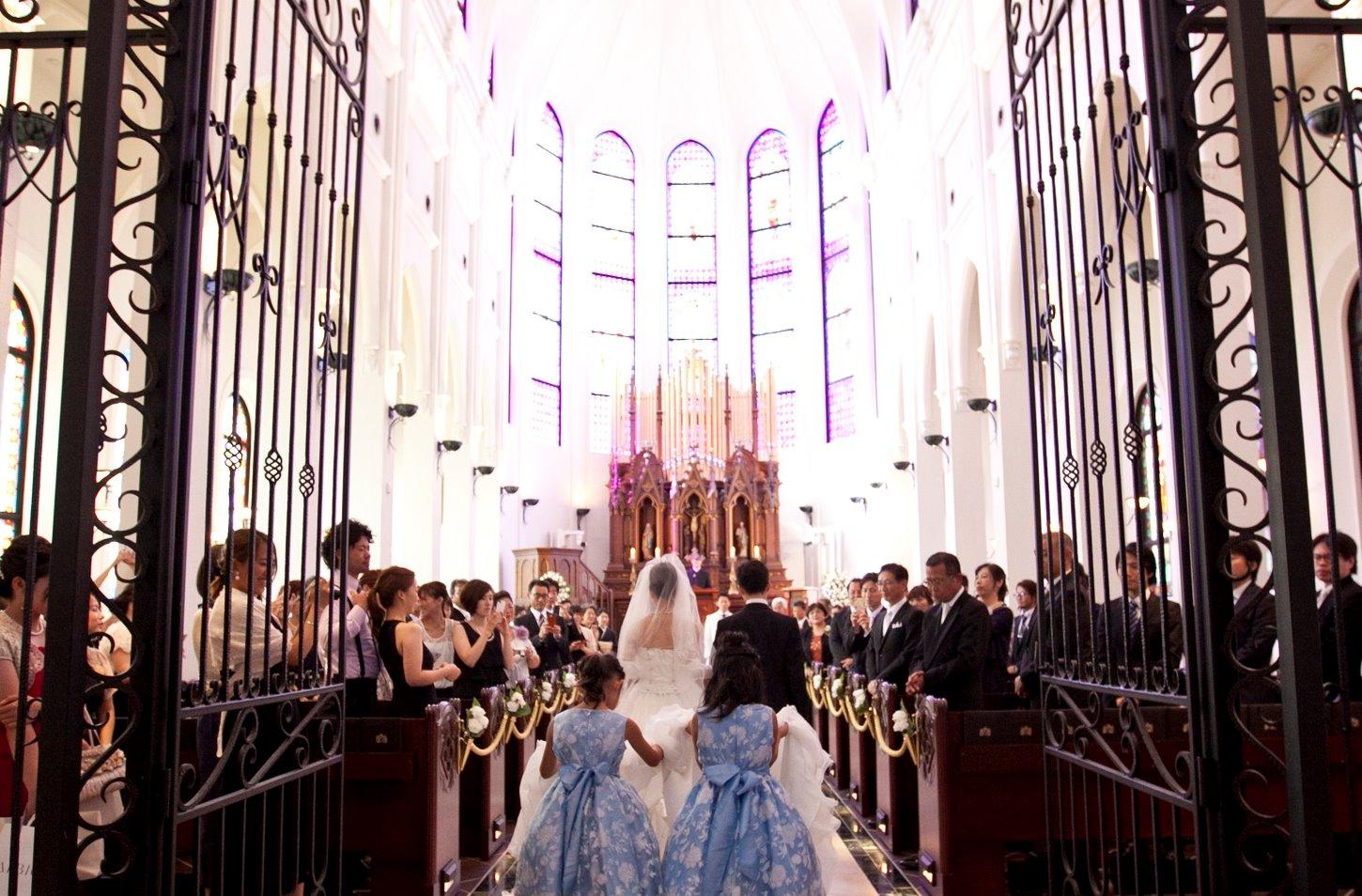 大聖堂を見た瞬間に、「ここがいい」と決まりました。天井が高くステンドグラスの輝きについ目を奪われてしまった大聖堂。制限なくゲストを呼ぶことができるのも嬉しいポイント。