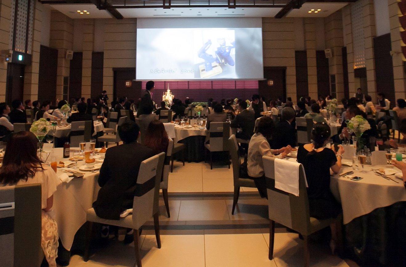 見やすいと大好評の巨大なスクリーンにゲストはびっくり。大好きな洋楽の名曲を取り入れオシャレなこだわりのオープニングムービーに仕上がりました。