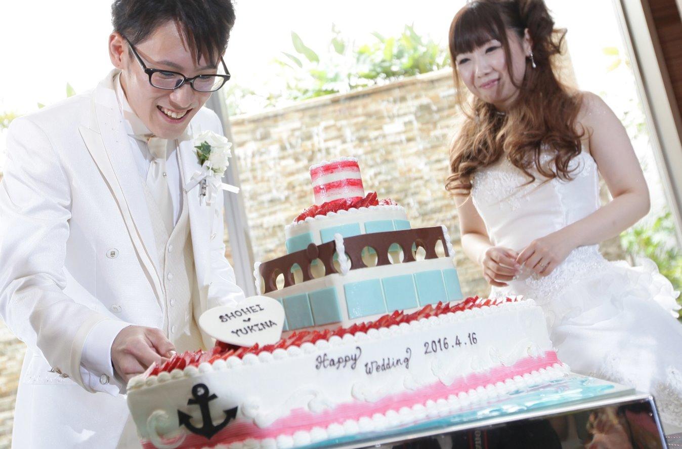 ウエディングケーキは花婿様のお仕事にちなんだShip Cake!!大きな船を大好きないちごでトッピング。見た事のないケーキにおふたりも大喜び♪たくさんのゲストからの写真も笑顔で答えて頂きました。