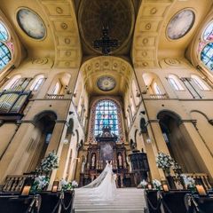 【大聖堂挙式】福岡一美しいステンドグラスと天井高20m圧巻の大聖堂は必見!日本で唯一サンマルコ寺院から祝福を受けた正統な教会。特別な空間で記憶に残る感動のひとときを。