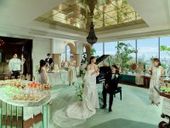 キリスト教式:最大90名まで 人前式:最大90名まで ガーデンセレモニーもお承り可能。 まるで空に浮かぶようなドラマティックな天空の教会。 自然光の影のコントラストが、映画のワンシーンのように花嫁の表情を美しく映し出します。 |