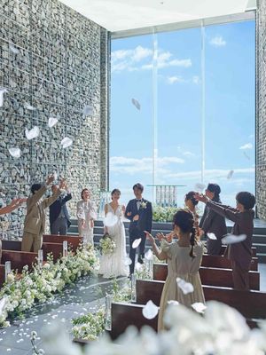 | 挙式スタイル | キリスト教式:最大90名まで 人前式:最大90名まで ガーデンセレモニーもお承り可能。 まるで空に浮かぶようなドラマティックな天空の教会。 自然光の影のコントラストが、映画のワンシーンのように花嫁の表情を美しく映し出します。 |