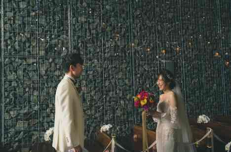 天空の教会から見える空の景色を気に入ってくださったお二人は、太陽の光がたっぷり差し込むお昼の挙式をセレクトされました。 新婦様のブーケは、ご新郎様がプロポーズをした際にお渡しした花束をイメージしたもの。特別な思い出をアレンジすることでより素敵な思い出ができました。 リングボーイ&ガールのかわいいお手伝いでハートフルなセレモニーになりました。