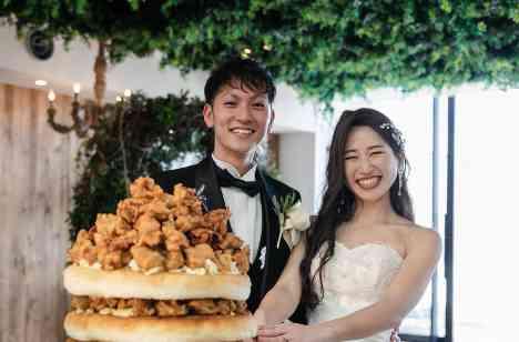 ゲストに楽しんでいただくサプライズは、皆さまのお席にも。みなさまのお席には、席札としてそれぞれの名前入りのマグカップをご用意。思いがけない嬉しいサプライズに、ゲストの皆さまの嬉しそうな表情が印象的でした。 また、おふたりも楽しみにされていたのが、オリジナルでご用意した目を引く唐揚げケーキ!もちろんファーストバイトでは、お互いに唐揚げを食べさせ合う素敵なシーンで大盛り上がりでした。