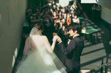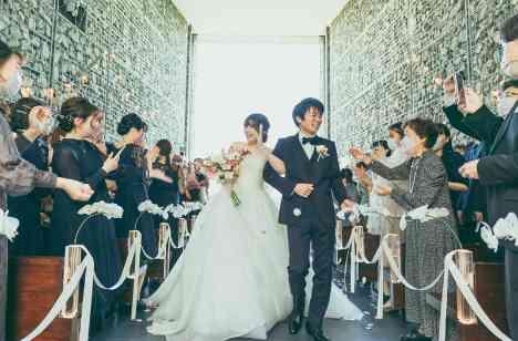 おふたりがsolaで結婚式をされる決め手となった天空(そら)の教会。おふたりが入場される前のチャペルには、石造りの壁の隙間から差し込む春の優しい木漏れ日が星のようにキラキラと輝き、神聖な空気を演出します。 バージンロードの先にある大空をのぞむ祭壇にふたりが揃われると、まるで空に浮かんでいるように。唯一無二の感動的な時間になりました。