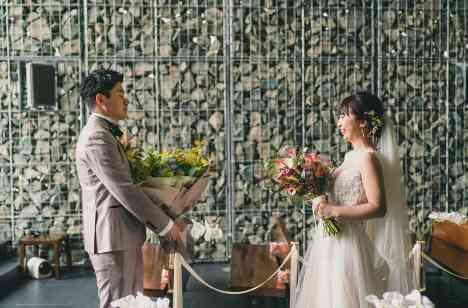 チャペルでのファーストミート。花束を持って新婦様の到着を緊張の面持ちで待たれる新郎様。新郎様が待たれる祭壇へと続く光のバージンロードを一歩一歩歩みを進められるはにかんだ表情の新婦様。 これから始まる結婚式への思いや、初めて見るお互いの晴れ姿を思い浮かべながら、ワクワクと緊張が入り交じったふたりだけのとても貴重な時間になりました。