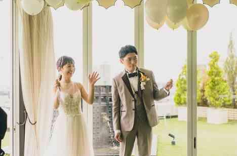 デザートタイムは雰囲気を変えて屋上ガーデン「レトワール」で♪ソファーでデザートを楽しまれたり、屋上からの景色を楽しまれたり、皆さま思い思いにゆっくりとした時間を過ごされました。 バルーンの色味にこだわられたバルーンリリース◎ちょうど雨上がりのタイミングに恵まれて、全員でバルーンリリースを楽しまれました。