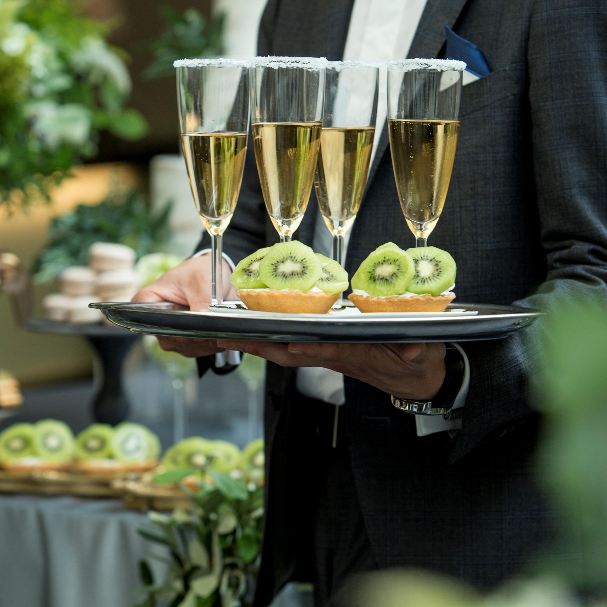 挙式と披露宴の間にゲストと楽しむウェルカムパーティをご用意。披露宴前に30分間のおもてなしタイムでは地産地消のフィンガーフードやドリンク、DJやマジシャンショーやおふたりならではのを演出を多数ご提案。