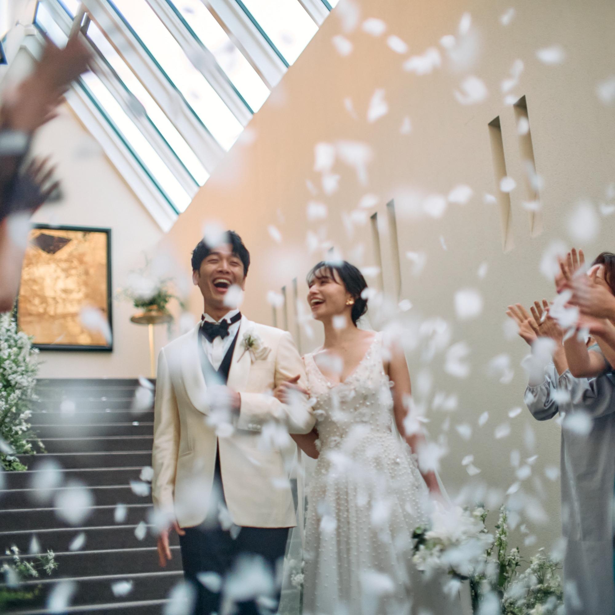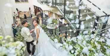 最上階のバルコニーをふたりで貸し切って。青空の下のふたりだけの特等席。 最上階の庭園から見渡す景色は圧巻です。心地よい風、見上げる空、太陽の光・・・ 一つ一つが特別で、ふたりの始まりを刻みます。