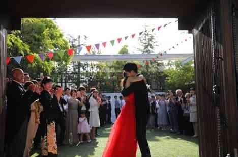 退場シーンでは感謝のお気持ちを込めて一人ずつへハグをしながらの退場シーンをご提案。クライマックスでは新婦様へのエールを含め、想いの溢れたお父様が思わず新婦様をお姫様抱っこをされました。そして新郎お父様と新婦様とで腕を組んだりハグをしたり、お二人が想い描いていた以上の【両家の垣根を越える】を実現できました。