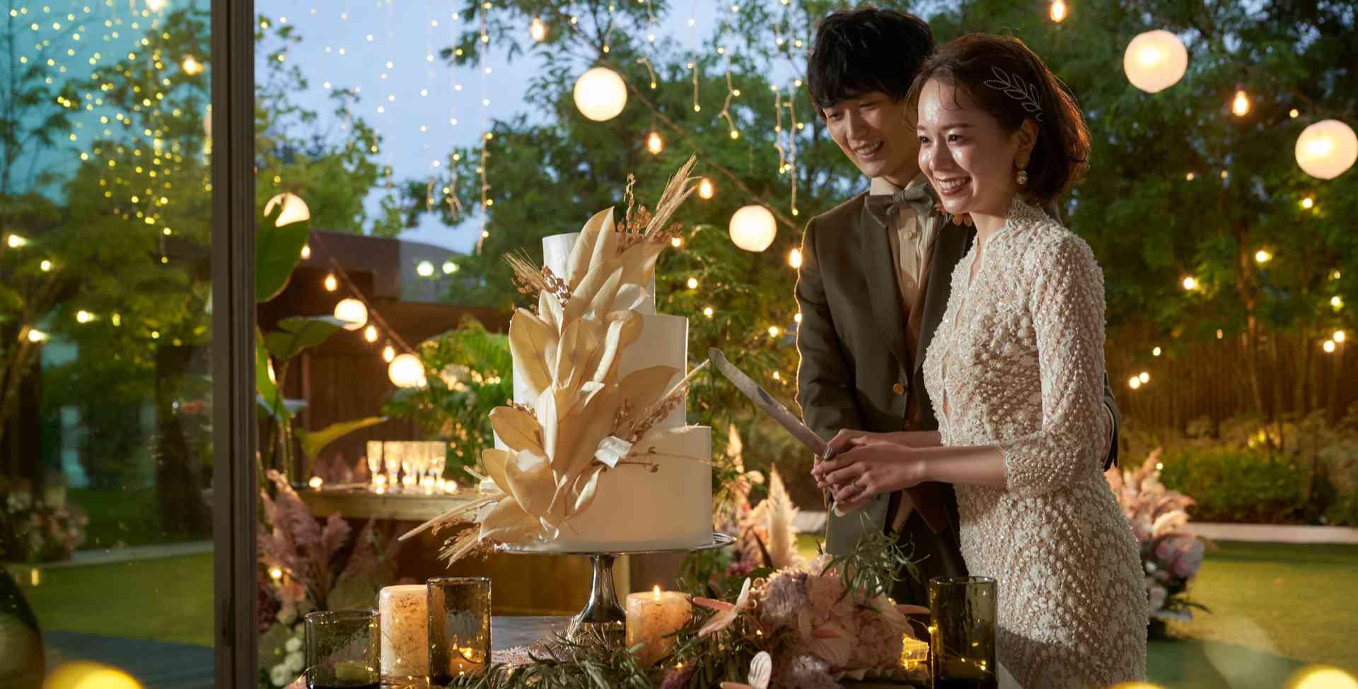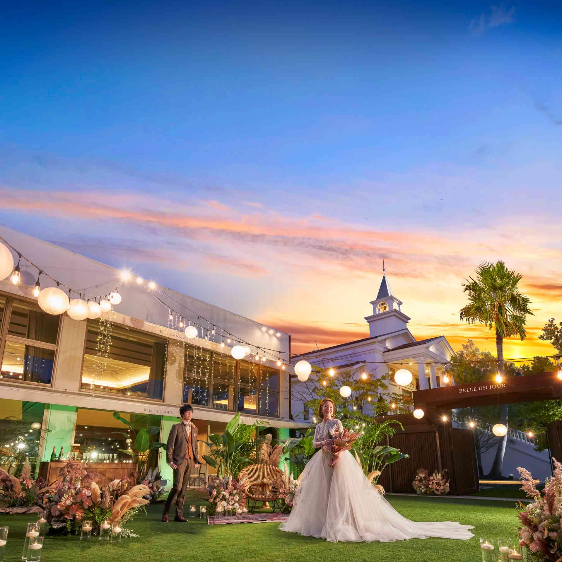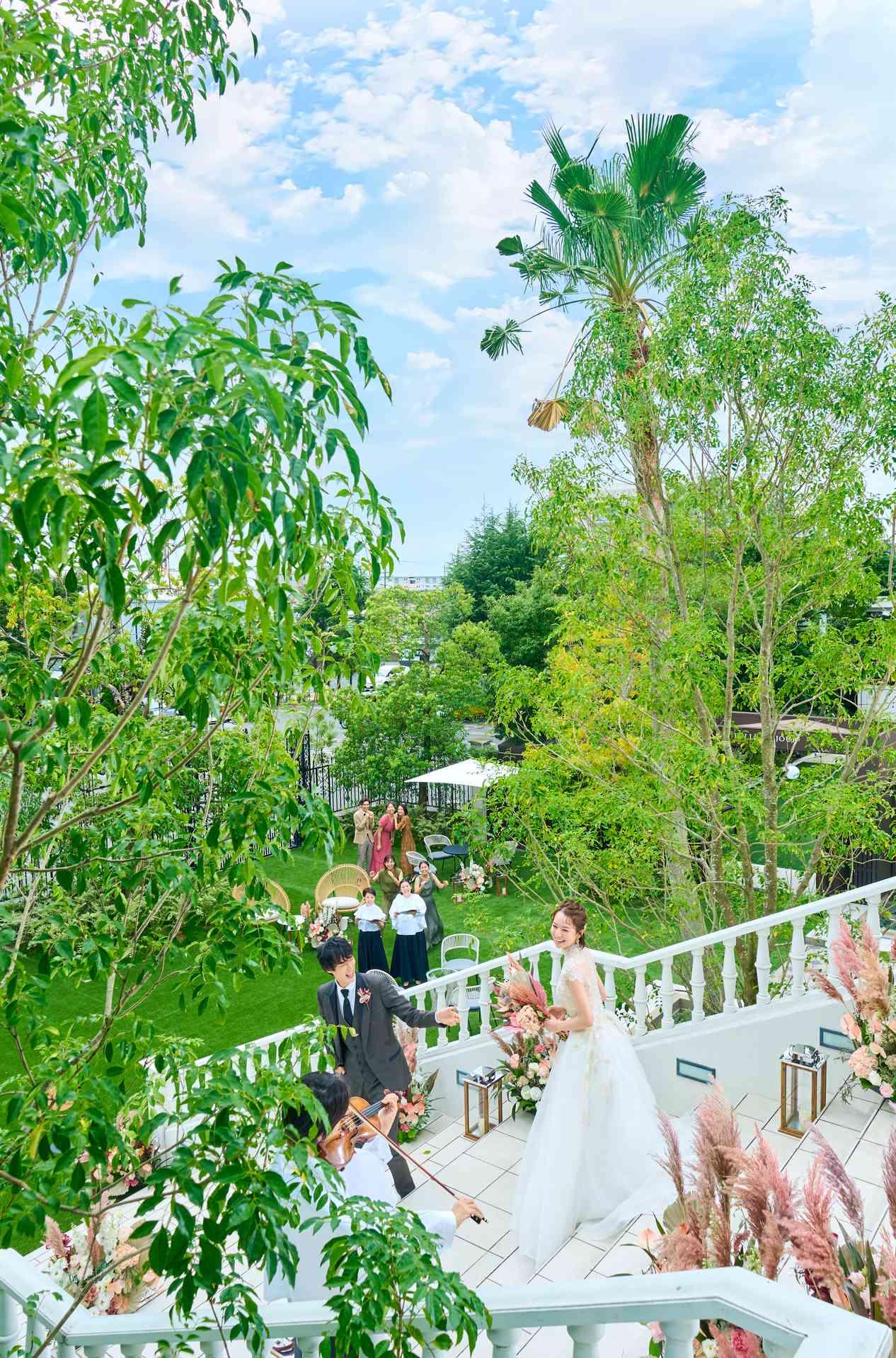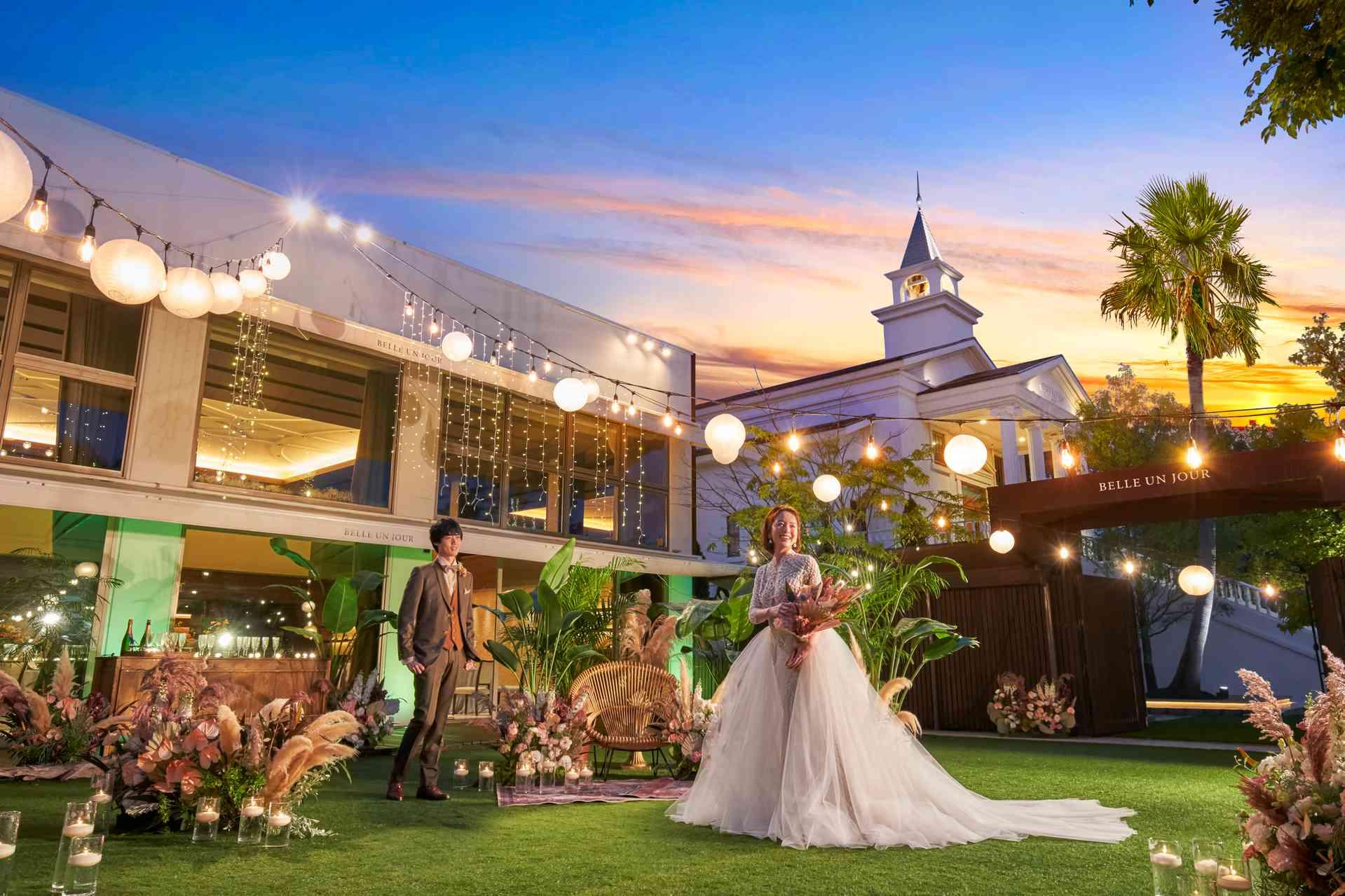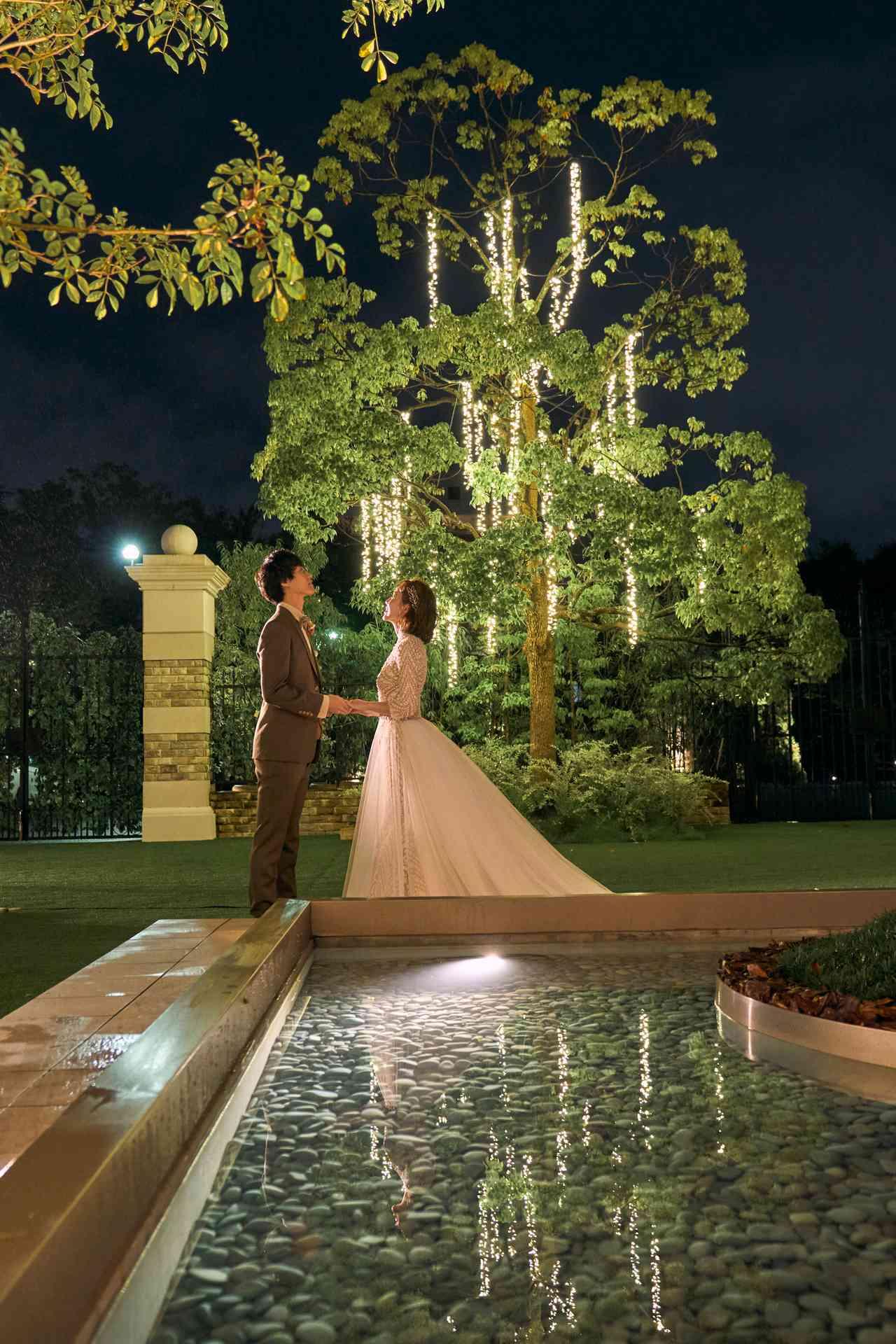 披露宴会場の目の前に開けるプライベートガーデン。多彩なビュッフェ演出はもちろん、様々な入場シーンも盛り上げる。 昼間と夜とで姿が変わるガーデンに注目。どんな使い方をしてゲストに楽しんでもらいますか。