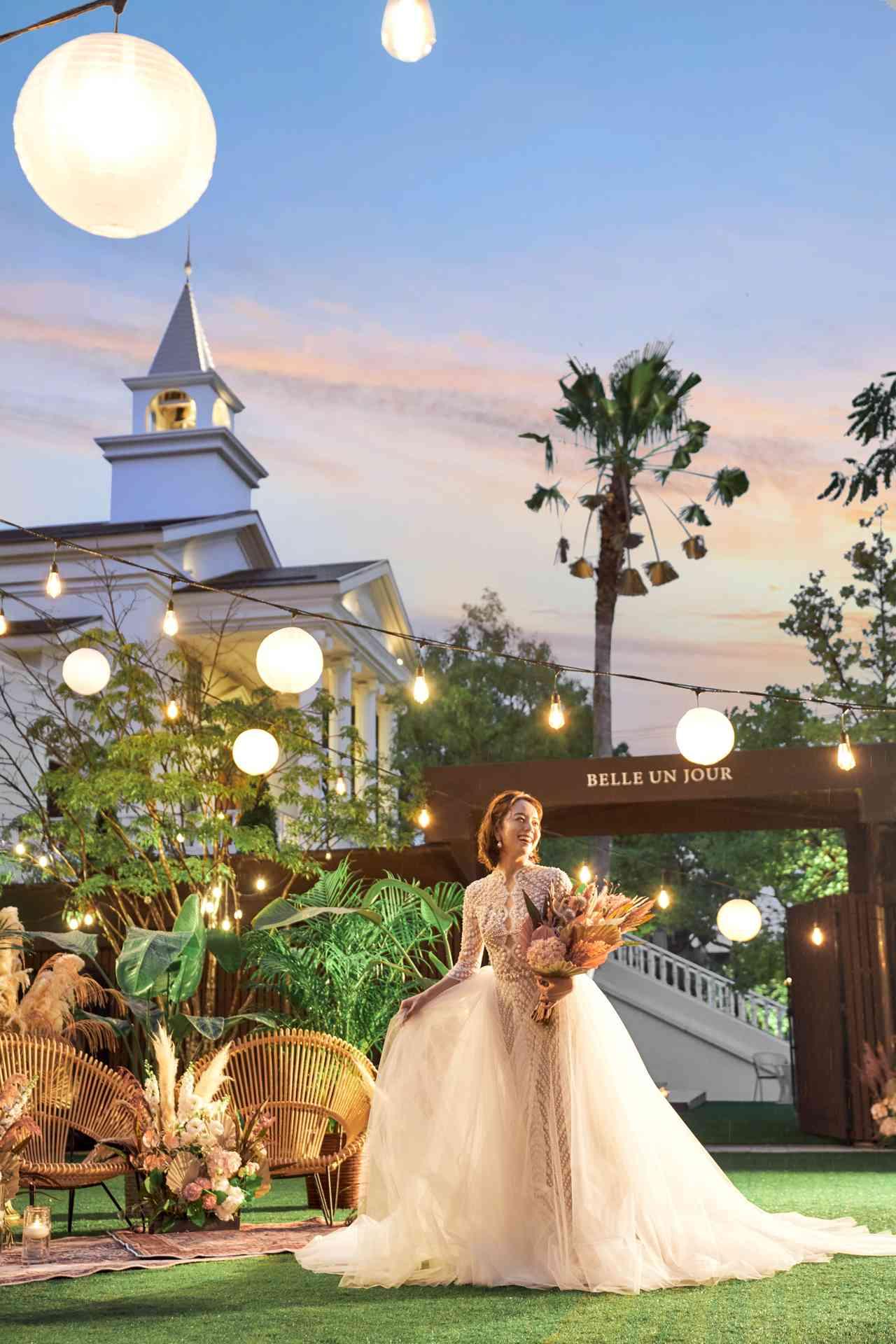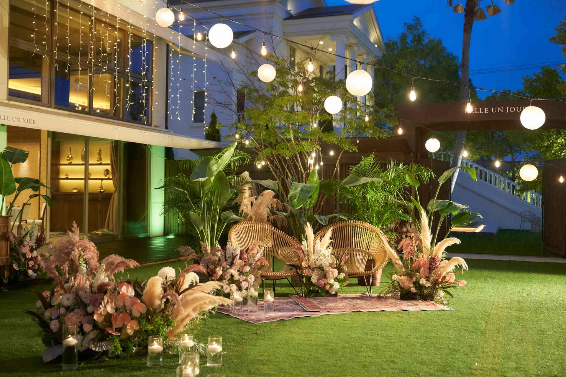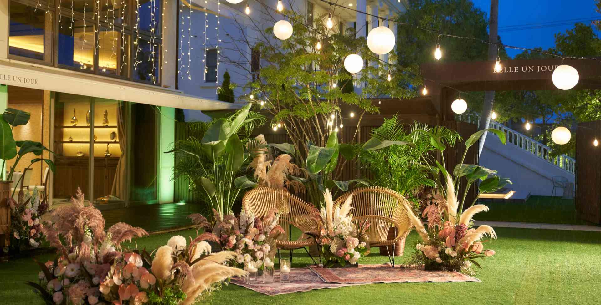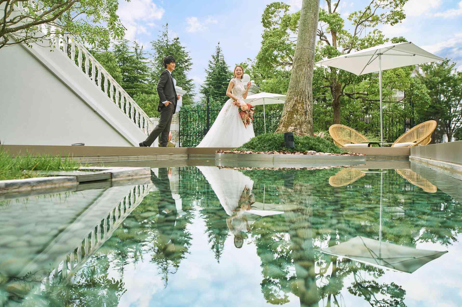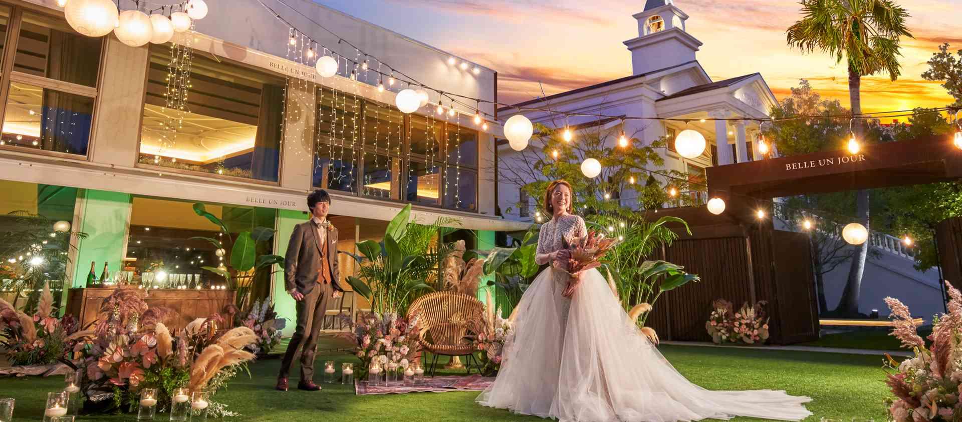 披露宴会場の目の前に開けるプライベートガーデン。多彩なビュッフェ演出はもちろん、様々な入場シーンも盛り上げる。 昼間と夜とで姿が変わるガーデンに注目。どんな使い方をしてゲストに楽しんでもらいますか。