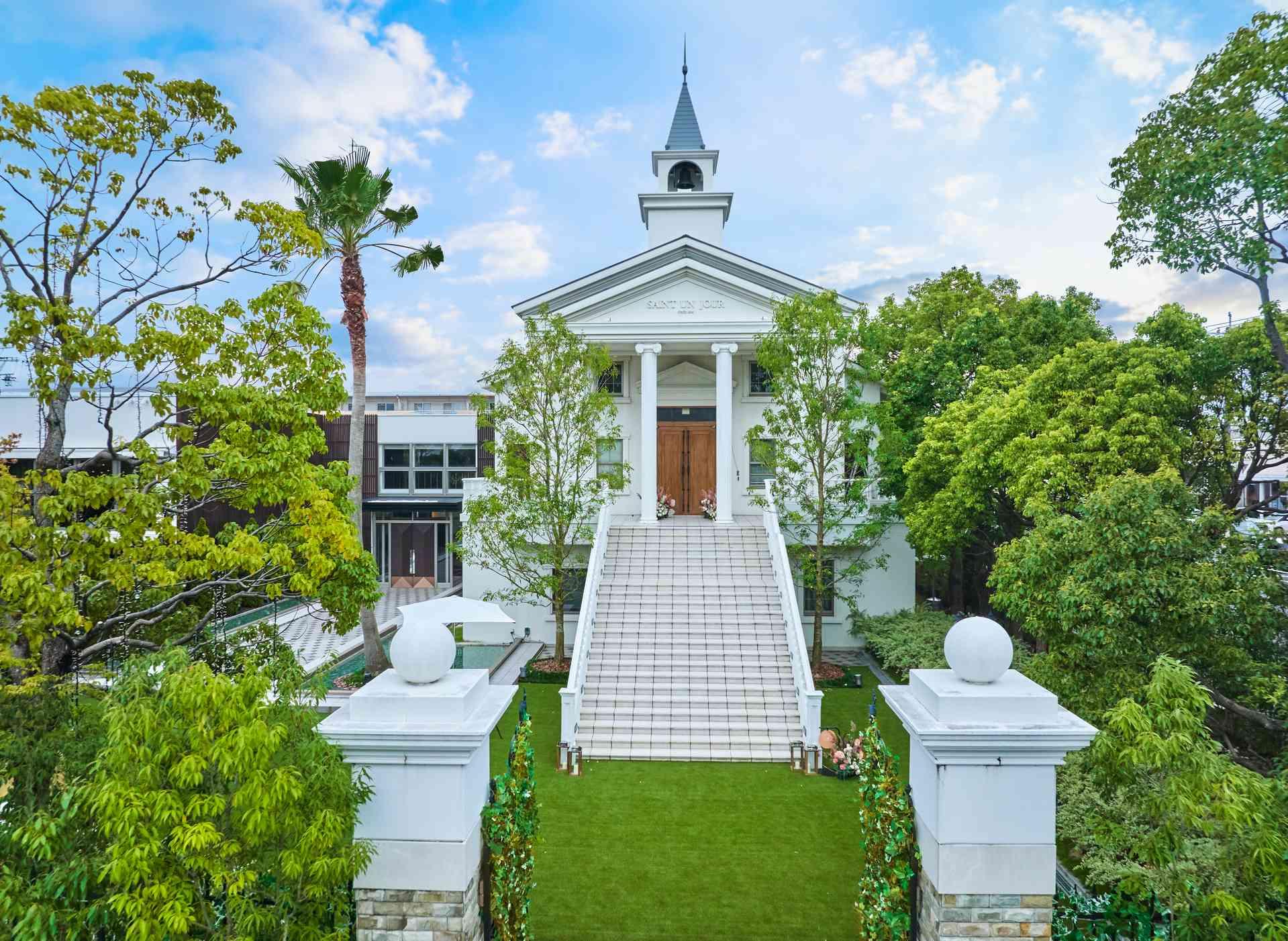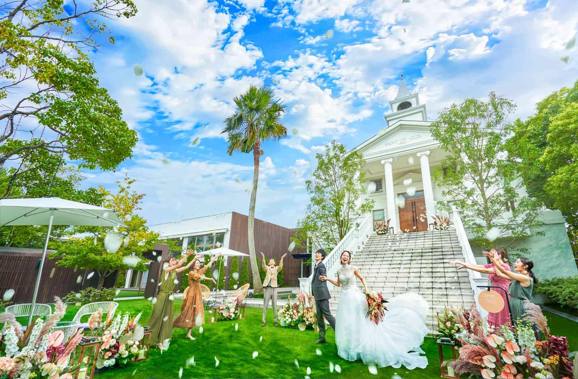 開放感溢れる白い空間は生演奏の音が心地よく響き渡り、360度プロジェクションマッピングがゲストに感動を与える。挙式後には大階段にて憧れのフラワーシャワーを。【成約特典:挙式料10万円プレゼント】