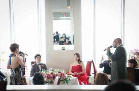 ウェディングパーティ後半には、シンガーの方にサプライズで登場してもらい会場を盛り上げて頂きました♪♪ 実は生歌でおふたりが入場、その後登場いただきましたが、会場が一気に盛り上がり、素敵な雰囲気に包まれました。みんなでリズムにのって、盛り上がったり、歌声にうっとりしたりと最高のお時間をお過ごしいただきました♪♪