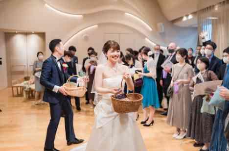 どうしてもやってみたかったお菓子まき。小さいころにもらったお菓子が忘れられなくて、花嫁になったらやってみたいと思っていたお菓子まき。もらうみんなも、なげるおふたりも楽しくて♪ 名古屋といえばお菓子まき♪ セレモニーで誓いをたてたあとは、みんなに幸せのおすそ分け。コロナの中集まってくれたゲストに感謝の気持ちも込めて、想い出に残る時間となりました!!