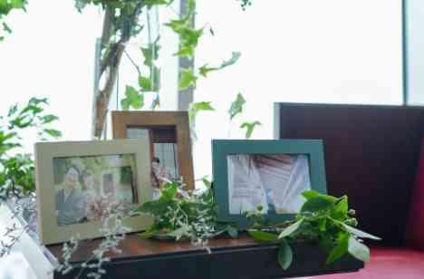 おふたりが選ばれたのは、教会式。名古屋で一番空に近いこの場所は、北欧好きなおふたりにとって、お気に入りの場所。やさしくて、やわらかい光や音に包まれて、神さまに誓いをたてる、おふたりにとってはかけがえのない想い出の場所に。その雰囲気に合わせてコーディネイトしたブーケも柔らかいものを。結婚証明書は生まれた年のワインボトルにサインを。あけるのが楽しみに。