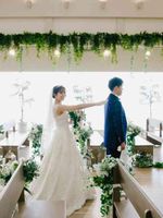 海を眺めながら誓いができる挙式会場では、チャペル挙式と人前式が可能。絶景ロケーションに開放感あふれる会場は、1組貸切でアットホームな空間が人気!