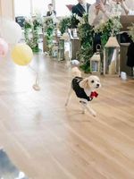 リングドッグとは、指輪を運ぶ役割を愛犬にお願いする演出です。 愛犬と一緒に結婚式に出たい、家族の一員として記念に残る演出に参加させてあげたい!という方におすすめ。1匹だけでも、複数の愛犬みんなでも!もちろんワンちゃん以外の大切なペットの参加も○可愛らしさにゲストもほころぶ瞬間です