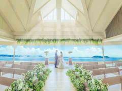 空と海の水平線のコントラストが映えるオーシャンビューチャペルで感動のセレモニーを。 ドレスのトレーンが映える長いバージンロード、開放感のある高い天井窓から差し込む自然光、ナチュラルでどんなドレスにも合うこのチャペルは、2つのスタイルでオリジナル感を演出できる