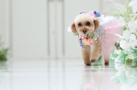 挙式はみんなに誓いをたてる人前式が良かったので誓いの言葉は大好きな同期のみんなにお願いをしました。 おそろいのドレスで、参列してくれていたのですごくかわいかったです! 指輪は、天使になった愛犬が運んでくれました。 真っ直ぐAさんの元まで運んでくれて自然に会場のゲストのみんなも笑顔になれる瞬間でした。