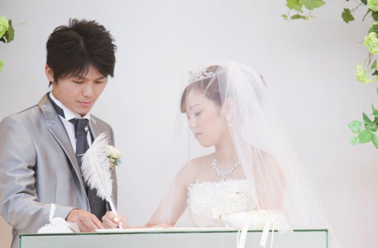 お母様の最後の身支度、ベールダウンから始まった挙式 皆様が見守られる中、新たな人生の誓いとして結婚証明書に サインをしていただくおふたり ご新郎様の緊張をほぐすようなアットホームな挙式でした