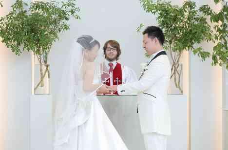 ガーデンテラス東山のチャペルは三面ガラス張りになっており、緑に囲まれた中での挙式が執り行えます。 おふたりはそれだけではなくチャペル内にも緑をいれ、よりナチュラルで自然の温もりを感じられるチャペルに仕上げました。 キリスト教会式を選ばれ、厳かでありながらおふたりの色が出た挙式でございました。