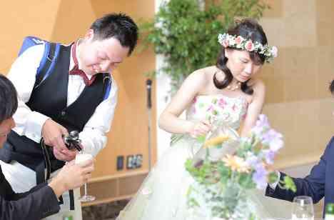 たくさんのおもてなしをご用意されたおふたり。 テーブルラウンド時にはビールサーブを行いました。より近くで直接おもてなしをされ、またお話もされととても笑顔の溢れる披露宴でした。 親御様には感謝のお気持ちを表すためラストバイトを行われました。今まで育てていただいた親御様へ直接感謝のお気持ちを伝えられたと思います。